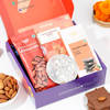 Celebrate the sacred bond you share with your brother this Almond Bliss Bhai Dooj Hamper. This elegant hamper features a delightful assortment of treats, including Chana Badam Burfi, which offers a unique sweet flavour. Complementing this are Salted Roasted Almonds, providing a satisfying crunch, and Velvety Bar Roast Almonds, adding a touch of chocolaty touch to your celebrations. The hamper also includes Roli and Chawal, beautifully presented in a silver finish container, essential for the traditional pooja ritual. This hamper captures the essence of Bhai Dooj, making it a memorable gift.