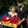 Ever mine, ever thine, ever ours. That's the feeling captured in this ethereal sundry studded with 60 deep red roses that come together to spell out love. It's the epitome of romance, wrapped in floral brilliance to convey your heart's deepest desires. Perfectly encapsulating, the feeling of true love.
