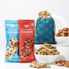 A cute rakhi with delicious treats is perfect for your Raksha Bandhan celebration. Relish this hamper with your brother and make it memorable. Meticulously crafted of metal, this rakhi features a motif of cute Bal Ganesha in distinct shades, bestowing the blessings of the god upon your brother. To make this hamper appetizing, it comes with black pepper cashew nuts, salted and roasted almonds packed in a blue potli, and a milk chocolate bar. Along with the rakhi, you will also receive roli-chawal for performing the ceremony with ease.