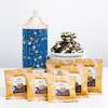 Savour a mix of bold flavours and indulgent treats with the Blue Floral Flavoursome Delights Hamper. This thoughtfully curated selection includes Masqa Date Barfi Bites, fiery Peri Peri Almonds, Thai Chilli Cashewnuts, Masqa Velvety Chocolate Mixed Nuts, and rich Coffee Chocolate. Completing the experience are Salted Roasted Almonds and Roasted Salted Cashews, beautifully packed in a blue floral canister. Perfect for gifting, this hamper blends sweet, spicy, and nutty goodness, offering a delicious experience that is as impressive to look at as it is to taste.