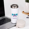 Add a pop of charm to every sip with a sleek coffee sipper featuring a vibrant butterfly and their name. Double-walled vacuum insulation helps keep drinks hot or cold for longer, making it perfect for commutes, work desks, and travel days. The leak-proof lid with a smart button opening adds convenience without spills. A thoughtful, daily-use gift that feels personal and looks premium anywhere it goes. - Material: Durable stainless steel with 100 per cent BPA-free components for everyday reliability. - Size: 7.5 x 7.5 x 15.5 cms, compact enough for bags and car holders, spacious enough for satisfying refills. - Personalization: Add their name for a one-of-a-kind sipper that feels truly theirs and easy to spot.