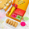 Celebrate Holi sustainably and joyfully with this thoughtfully curated hamper, perfect for spreading colourful cheer. Carefully packaged in an eco-friendly gift box, this delightful ensemble features organic gulal in pink and green hues for traditional festivities. Indulge your taste buds with delicious gujiya, a classic Holi treat. And get ready for fun-filled water balloon battles with Holi magic water balloons. You can also gift this hamper to your loved ones, wishing them vibrant festivities.