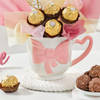 Add a touch of sweetness to their special day with this charming mug arrangement. A bow mug, filled with delicious Ferrero Rocher chocolates, is beautifully adorned with pink polka dot ribbons and a heart-shaped LED light. Wrapped in a mauve sheet and off-white tissue, this gift combines elegance and romance to create a memorable gesture of love. Perfect for making their day extra special.