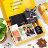 Show your Dad he is truly precious with this thoughtful gift hamper. It includes a sleek black leather wallet personalized with his name, adding a touch of sophistication to his every day. He will also enjoy a 30 ml bespoke perfume, a captivating blend of warm cinnamon, earthy musk, and fresh neroli. For a delightful treat, a Velvety Bar roasted almonds is included. A personalized photo card of your Dad with the One In A Million Dad message completes this perfect tribute to his unique awesomeness. Personalize the card with his cherished picture for a sweet surprise.