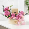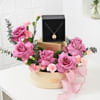 Bring tears of joy to your beloved with this exquisite arrangement. Arranged in a beige box, this lovely arrangement features the freshest deep purple roses, light pink spray carnations, and a rose gold steel disc with a stone pendant chain. This anti-tarnish chain features a 2cm pendant with a 16-inch chain plus a one-inch extension, making it perfect for daily wear. Personalize the pendant with her name and make it truly special.
