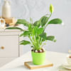 Redesign any corner and transform it into your very own happy space with nature's favourites, bundled together - A wooden box comprising Aglaonema Pink Plant, Peacelily Plant and Money Plant in green planters, adorned with stones and a wooden plant tag.