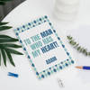 Steal his heart with this thoughtfully curated gift hamper. Featuring a personalized white notebook with To The Man Who Has My Heart and his name, and a fridge magnet that says Mine Forever with his photo, it is both emotional and elegant. Also included are Ajmal Carbon EDP, a masculine blend of citrus, lavender, cloves, woods, and musk, and a stainless steel temperature mug with 460 ml capacity. All of these come beautifully arranged in a macrame basket accented with fresh florals and a monochrome ribbon. Personalize the notebook with his name and magnet with his picture.