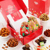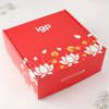 Discover pure delight that tantalizes your taste buds and pleases your senses. Packed beautifully in a red eco-friendly box, this hamper includes roasted and salted almonds, peri-peri almonds, thai chilli cashews, black pepper cashews, a pack of assorted chocolates, and two lotus design floral potli. Immerse yourself in a symphony of flavours with the crunchy nuts and add a touch of sweetness with the assorted chocolates. The floral design potli bags add an elegant charm to the hamper and can be reused later. You can also gift this gourmet box to your friends and family on special occasions.