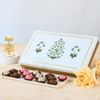 Celebrate Diwali with a hamper that sparkles as much as the festival itself. Light up the occasion with two Orange Metal Diyas, creating a warm, festive glow. Indulge in the rich, velvety Masqa Dark Divine Chocolate and a selection of assorted chocolates, perfect for satisfying every sweet craving. All these treats are beautifully presented in a marble-design box, adorned with a shimmering gold glitter ribbon, making gifting effortless and elegant. Thoughtfully curated, this hamper blends flavor, charm, and celebration, ensuring your loved ones feel cherished and festive joy is shared in every bite.