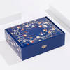Celebrate Diwali with this elegant hamper, featuring two beautifully crafted Metal Lotus Urli bowls and six vibrant floating candles to light up your space. Indulge in premium treats like Kaju Katli, Roasted & Salted Almonds, and Crunchy Cashews, a perfect balance of sweet and savoury. Thoughtfully packed in a luxurious Blue Floral Jaal box with a golden ribbon, this hamper is an ideal gift for Diwali. Share joy and warmth with a gift that speaks elegance and festivity.