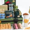 Indulge in an unparalleled gourmet experience with this grand celebration hamper. Presented in a huge green reusable box adorned with beautiful flower decorations and handle. This exquisite collection includes a charming green potli filled with salted almonds, a box of crispy Lavash crackers, and wholesome healthy namkeen. Savour the delicate dates mamoul and two tins of delicious cookies. A nine-piece Fern Collection assorted baklava box and a nine-piece Truffle Collection assorted chocolate box complete this lavish gift, perfect for any special occasion.