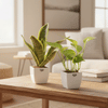 Transform your home into a serene and refreshing oasis with the splendour of nature. Presented in chic planters, this combo includes a money plant and a snake plant. The snake plant has beautiful dark green leaves with yellow edges, can live without water for days and is known to purify the air and remove toxins. The money plant, known for its prosperity, thrives with minimal care. You can place these plants in your living room, balcony, or work desk to give your space a chic look. Give these plants as gifts to your loved ones on special occasions, making their celebrations meaningful.