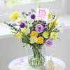 Every shade chosen with care, every bloom a quiet celebration of colour and light - Handpicked Hues is a radiant composition of sunlit yellow roses, buttery yellow carnations, golden mini gerberas, lilac-hued lisianthus, lavender-kissed statice, glowing solidago, cloud-white spray carnations, and fresh eucalyptus. Arranged in a ribbed glass vase and placed within a luxury box, it's a tender palette of beauty, thoughtfully gathered to brighten any moment.