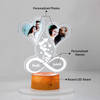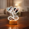 Enrich your journey of love with this captivating colour-changing lamp. This two-in-one lamp features an infinity shape with two hearts ballon of a 5mm clear acrylic sheet and has a glossy wooden texture base with 7 RGB colour options, a battery slot base, and a USB power cable. Make this lamp truly special by adding your pictures and names together. Place this lamp on the side table for your next get-together and see how many compliments you receive. Please Note: The battery is not included in the package.