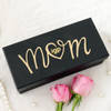Show Mom your love with this I Heart You box. On the top of the box is a special sticker that says Mom. Inside the box are the letters 'I' and 'U' crafted from pink sprayed gypso, and the heart is made of white gypso with a stunning aqua-pink rose right in the middle. It's a beautiful way to show your love to your mom and make her day extra special.