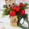 Welcome the season with a gift that blends humour, charm, and a touch of sparkle. The golden metallic mug sets the tone right away with its playful Tea Before Tantrums message, making it perfect for anyone who appreciates a cheeky moment during the holidays. It is filled with rich red baubles, fresh cyprus, and two classic milk chocolates for an extra dash of sweetness. Finished with a Santa tag and a soft green organza ribbon, it is a thoughtful pick that is ready to make someone smile the moment they unwrap it.