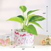 A ribbon-tied dream, delicate and full of grace. A ceramic bow planter cradles a thriving money plant, while a pink bow mug and porcelain rose pendant shimmer in soft holographic wraps. Gentle butterflies rest among the folds, and a gold pearl-edged ribbon weaves it all together. A gift adorned in elegance, wrapped in the poetry of bows.