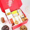 Get your bhaiya bhabhi a lavish hamper to delight their senses. Packed in an eco-friendly box, this hamper includes a bhaiya bhabhi rakhi set, black pepper cashews, centre-filled choco cookies, choco-coated almonds, floral-infused tea, a flower-printed reusable canister, and roli-chawal that comes in gold polished containers so that you can easily perform the ceremony. The bhaiya bhabhi rakhi features eye-catching mirror work, and the bhabhi rakhi displays lovely yellow beads. Get this hamper for your bhai and bhabhi and ensure your celebrations start on a sweet note.