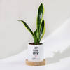 Bring the beauty of the outdoors into your home. This snake plant comes in a ceramic pot with a wooden base and features the words Let Love Grow. The indoor plant has beautiful dark green leaves with yellow edges and can live without water for days. It is widely known to purify the air and remove toxins. The plant requires minimal upkeep and can add a splash of colour to any space. Personalize the planter with your loved one's name and make this gift even more special. Tip: Snake plants are not just beautiful houseplants, but they also have air-purifying qualities.