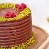 A perfect blend of decadence and freshness, this raspberry cream cake features fluffy sponge layers filled with velvety chocolate cream. The cake is beautifully adorned with fresh raspberries and pistachios, adding a delightful crunch and vibrant colours. Ideal for birthdays, anniversaries, or any special occasion, its rich, tangy-sweet flavour and elegant presentation make it a standout treat. A sophisticated choice for chocolate and berry lovers alike.