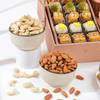 Elevate your gifting with this luxury sweets and nuts hamper, a truly opulent selection for any occasion. This exquisite collection arrives in a premium reusable pink box with a convenient handle, beautifully adorned with vibrant flower decorations. Indulge in 15 pieces of assorted Baklava and traditional sweets, each a masterpiece of flavour. Complementing these delights are two premium jars, generously filled with perfectly salted almonds and cashews. A sophisticated and delicious gift, perfect for expressing your heartfelt sentiments to family or friends.