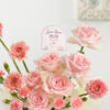Soft, graceful, and full of love, this stunning Mother's Day arrangement speaks volumes without saying a word. Featuring delicate Sweet Avalanche roses, charming light pink mini gerberas, and spray carnations in soft hues, it is a beautiful tribute to the most special woman in your life. Arranged in a chic black quilted paper bag with a stylish chain handle and finished with off-white tissue, this elegant gift is completed with a Love You Mom paper tag. A perfect way to show appreciation, admiration, and endless love this Mother's Day.