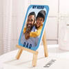 Honour your dad with a personalized gift hamper designed for his everyday appreciation. This thoughtful collection includes a ceramic mug boldly declaring Dad, You Are My Hero, personalized with his name, perfect for his morning brew. A photo frame, complete with a wooden easel, provides a place for a cherished picture of him. Rounding out this set is a stylish blue notebook, subtly embossed with his initial, ideal for his notes and thoughts. Personalize the notebook and mug with his name and the frame with his picture for a perfect blend of utility and sentiment.