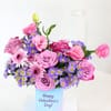 Romance arrives in a pastel burst that turns any corner into a Valentine moment. Purple roses, pink lisianthus, and purple daisies come together in a charming 8 x 8 cms blue square glass vase that reads Happy Valentine’s Day, creating a ready-to-gift surprise with instant impact. Soft hues, fresh textures, and a cheerful message make it perfect for desks, bedside tables, and dinner setups. Thoughtful, photogenic, and effortlessly sweet, it’s a Valentine's Day gift that says it all without needing extra words.