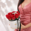 Emotion unfolds beautifully through a refined floral statement designed to impress at first glance. Nine rich red roses rise from a deep brown cylindrical box, accented with a delicate pearl bow and sleek black ribbons for striking contrast. The blend of softness and structure feels elegant, intimate, and thoughtfully composed. Styled especially as a valentines day gift, it conveys affection, admiration, and intention without needing many words. Perfect for meaningful surprises, it transforms a classic floral gesture into something memorable and distinctive. A graceful way to express feelings that deserve to be seen, remembered, and cherished long after the moment passes.