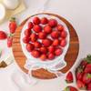 Adorned with shimmering pearl-edged ribbons and a crown of ruby-red fruit, this couture-style strawberry cake is an elevated dessert designed for grand celebrations. A tall, pristine white foundation transforms the cake into a centerpiece of high-fashion elegance, featuring delicate layers of sheer white ribbon with shimmering pearl-beaded edges that drape beautifully around the sides. A large, matching statement bow adds a touch of bridal-chic sophistication, while a lush canopy of hand-picked, vibrant strawberries crowns the top for a decadent finish. Resting on a classic wooden base, this artisanal creation shapes a warm, intimate ambiance, perfect for weddings, proposals, and luxury anniversaries that feel truly special.