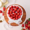 Adorned with shimmering pearl-edged ribbons and crowned with luscious ruby-red strawberries, this couture-style cake is crafted to honour the beauty of a Nikkah celebration. A tall, pristine white base creates an aura of purity and elegance, wrapped in delicate layers of sheer ribbon finished with pearl-beaded edges that cascade gracefully around the cake. A soft statement bow adds refined charm, while a generous topping of fresh, hand-picked strawberries forms a vibrant crown of sweetness. Finished with a golden Nikkah Mubarak topper, this artisanal creation becomes a stunning centrepiece for joyful blessings, meaningful traditions, and unforgettable wedding moments.