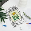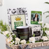 Celebrate the brilliance of leadership with the Personalized Awesome Boss Hamper, a thoughtfully curated collection. Nestled in an elegant macrame basket, this hamper features a notebook that proudly proclaims Queen Boss. A magical mug reveals the words You Are Truly An Awesome Boss when filled with a warm beverage. The Interflora perfume offers a refreshing aroma, while a stunning floral arrangement of white spray carnations, statice, and springery, tied with a black-and-white ribbon in the basket. Completed with a personalized fridge magnet with their picture and the words The Greatest Boss.