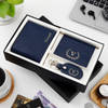 Elevate his daily essentials by adding a touch of class and elegance with this Cool Essentials Birthday Hamper For Him. This hamper includes a wallet, a cardholder, and a keychain, in a lavish and attractive navy blue colour. The essentials are made of premium materials, keeping detailing and quality in mind. Accompanied by a cute greeting card adorned with the words To The Man Of The Hour, Happy Birthday for a heartfelt wish. Personalize the wallet with his name and the keychain and cardholder with his initials and make this hamper as unique as him.