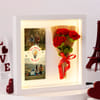 Brighten up your Valentine's Day with this unique Valentine's Day gift idea, an LED MDF frame featuring two of your couple pictures along with a heartfelt message, You Light Up My World. Paired with a beautiful bouquet of crochet roses wrapped in jute, it adds a charming touch to your home. Personalized with your own photos, this decorative piece makes for an unforgettable gift. - Material: MDF frame with pure yarn crochet roses, combining elegance and charm. - Size: Frame - 28 X 27.5 X 3 cm, Bouquet - 17 cm, perfect for any space. - Personalization: Personalize with your couple pictures to make it meaningful and yours.