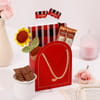 Surprise someone special with a beautifully curated hamper that blends elegance, sweetness, and thoughtful charm. Featuring a delightful mix of meaningful keepsakes and indulgent treats including a personalized notebook, a charming crochet flower pot, and delicious chocolate bars is carefully chosen to create a memorable gifting experience. Beautifully arranged and presented in a stylish paper bag, this hamper makes a heartfelt way to express appreciation, affection, and gratitude for someone who truly means a lot to you. - Includes: - Red Plaid Design Notebook with Her Name - Two Masqa Velvety Chocolate Classic Milk Bars - Crochet Sunflower Pot - Coral Red Paper Bag with Golden Dori