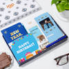 Give your friend this evil-eye birthday hamper of goodies that he will surely appreciate. The hamper consists of a greeting card adorned with the words 'Happy Birthday' and birthday illustrations with a delicious Velvety Bar Milk chocolate. Accompanied by a high-quality mobile stand, a blue notebook decorated with evil-eye motifs, and a blue matte finish ball pen. All these goodies come in an evil-eye top-bottom box, making it a perfect gift. Personalize the mobile stand with his image and the book with his image so that he will use it every day.