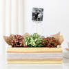 Add charm to any space with this elegant Fittonia Trio gift set. Featuring white, dark pink, and light pink Fittonia plants arranged in a beige leather wooden tray. Wrapped in jute with delicate white lace ribbon, this botanical beauty blends rustic elegance with natural warmth. A custom fridge magnet showcasing your favourite photo and message sits proudly on a gold metal tag holder stick, making this a heartfelt and stylish gift for any occasion or celebration. Personalize the magnet with your cherished picture together and your desired message for added charm to the heartfelt gift.