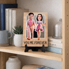 Celebrate your bond with a charming couple's caricature that beautifully tells your story. Depicting a couple strolling hand in hand, it features the heartwarming text You Me Forever on an acrylic base. With its elegant black stand, this piece makes a perfect addition to any home, capturing the essence of love and togetherness. A timeless keepsake, it will always remind you of your special moments together. Personalize the caricature with your pictures to keep the love alive and cherished.