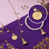 Be it a casual look or partywear, accessories add sparkle to any ensemble. Here's a jewellery set for girls that's an eye-catcher. Inclusive of earrings, a bracelet and a pendant that's personalizable with an initial, the set is adorned with beautiful pearls and a princess charm.