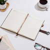Surprise them with a diary that feels polished and purposeful. The brown faux leather cover has a smooth finish, ruled pages, a magnetic strap that closes with a clean snap, and a pen loop that keeps essentials in place. The name in UV printing turns it into something they will reach for every day. - Material - The cover is made with high-quality faux leather that offers a soft touch, sturdy feel, and long-lasting durability. - Size - With 15 x 21 cms size it is easy to hold and spacious enough for notes, plans, and ideas. - Personalization - Add the name with UV printing giving it a crisp, permanent look that makes the diary feel thoughtfully personal.