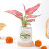 Add a touch of nature, sweetness, and tradition to your loved ones Diwali with this personalized sweetness hamper. Elegantly nestled in a ceramic planter resting on a charming wooden base. Adorned with the heartfelt phrase Shubh Dipawali, it radiates warmth and positivity. Accompanying this lush beauty is a delectable box of dodha burfi, a traditional sweet that tantalizes the taste buds with its rich flavours. To illuminate your celebrations, a set of two ornate metal diyas adds a touch of shimmering grace. Personalize the planter with their family name and make it a forever keepsake.