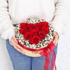 Love is captured in timeless elegance with every petal. A carefully curated arrangement of lush red roses and delicate Baby's breath sits gracefully in a beige lid box, creating a beautifully refined look. Tied with a luxurious maroon organza ribbon, the design feels rich and heartfelt. This Valentine's Day gift is the perfect balance of sophistication and emotion, making it an unforgettable way to express your deepest affection. Thoughtfully crafted, it delivers a message of love that's bound to leave a lasting impression. Perfect for someone who deserves the best. - Total No. of Stems: 13 - Red Roses And Baby's Breath - Maroon Organza Ribbon - Beige Lid Box