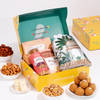 Experience a delightful mix of flavors with this thoughtfully curated gift hamper. Savor Thai Chilli Cashewnuts and Peri Peri Almonds, elegantly packed in a Royal Dome Potli Bag for a touch of sophistication. Enjoy the traditional sweetness of Besan Laddoos and the indulgent Masqa Velvety Chocolate Zesty Orange for a burst of richness. Balance taste and health with the crunchy, nutritious Healthy Treat Roasted Millet Mix. Perfect for gifting or treating yourself, this hamper combines luxury, flavor, and nutrition in one beautiful package that will leave a lasting impression.