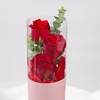 Surprise your loved one with a gift that radiates warmth and affection. The Lights up My World blush pink wrapping sheet embraces 3 stunning red roses, accompanied by very fragrant eucalyptus, creating an elegant arrangement. Complemented by a Together Forever tag and hand-tied with a maroon organza ribbon, this thoughtful gift exudes love. The addition of a cute brown teddy bear adds a personal, cuddly touch that makes it even more special. Perfect for expressing your love, it's a beautiful combination of blooms and cuddles, making it a perfect Valentine's Day gift.