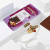 The perfect blend of tradition and modernity, this rakhi combo will ensure you have a memorable celebration. It includes a Shiva bracelet rakhi, Kaju Katli, roli-chawal, silver puja thali, and a decorated coconut Kalash so you can perform the ceremony easily. Once the festivities are over, you can place the thali in your puja room. The bracelet has a motif that is a combination of Damru, Trishul, and Rudraksha, all of which hold cultural and religious importance. The Kaju Katli included will ensure your celebrations start on a sweet note.
