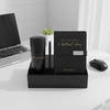 Secure a stylish and practical gift with this black diary, bottle and pen set, neatly arranged in a sleek box. The faux leather diary, steel bottle and metal pen come together as a thoughtful pick for daily use, office desks or special occasions. It is a smart way to impress anyone who appreciates functional style. - Material: The set includes a faux leather-covered diary for a smooth writing feel, a durable stainless steel bottle, and a sturdy metal pen crafted for comfortable writing. - Size: Diary measures 15 x 21.5 cm, while the bottle stands at 17.5 x 7.5 cm, making both items easy to carry. - Gifting: Ideal for birthdays, work milestones, festive occasions or thoughtful gestures when you want to give something practical yet stylish.