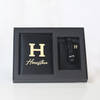 Organize their travels with this sophisticated black passport holder and luggage tag combo. Crafted from premium faux leather, the sleek passport holder offers practical elegance, featuring two convenient card slots, dedicated space for a passport, and two essential SIM slots for international journeys. The matching luggage tag, also made from durable faux leather, ensures his bags are easily identifiable. This coordinated set provides both functionality and a touch of refined style for any globetrotter. Personalize the holder with their name and tag with their initial for an ideal gift.