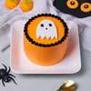 Add a playful scare to your Halloween table with this adorable 250-gram cake. Frosted in rich orange cream, it features a charming fondant ghost at the center, framed by dark piped borders for that perfect eerie touch. Soft, creamy, and full of festive spirit, it is the ideal treat for parties or cozy nights in, capturing the fun side of spooky season in every delicious bite.