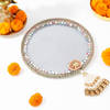 This Karwa Chauth, let elegance take over your celebrations with this beautiful blue pooja thali and samagri set. Crafted by skilled artisans, the pooja thali features intricate tassels, adding a touch of grace to your rituals. The set includes essential Karwa Chauth pooja items like a glass, channi, dupatta, bindi, kajal, sindoor, and a mehendi cone, ensuring you have everything you need for the holy ceremony. Additionally, a beautifully designed greeting card with the words Chauth Mata adds a loving touch. Celebrate this special occasion with a set that embodies tradition.