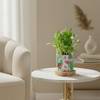 Designed for thoughtful gifting, this Two-Layer Bamboo Plant radiates calm, positivity, and good fortune. Nestled in a cylindrical ceramic planter resting on a natural wooden base, it is a beautiful balance of simplicity and elegance. The planter features a serene flora and fauna print, adding a soothing artistic touch to its modern form. Perfect for home or office spaces, this easy-to-care-for plant brings freshness, harmony, and charm an ideal gift symbolizing growth, balance, and well-being for someone special.